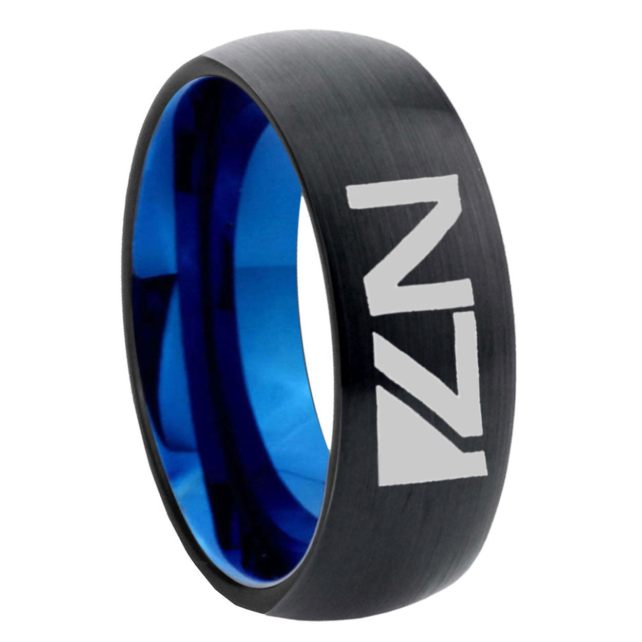 Intruding 5, 8mm N7 Design Dome Tungsten Carbide Blue Wedding Band Mens . Offer in both 5mm and 8mm band width black and blue plated finished from size 4 to 14