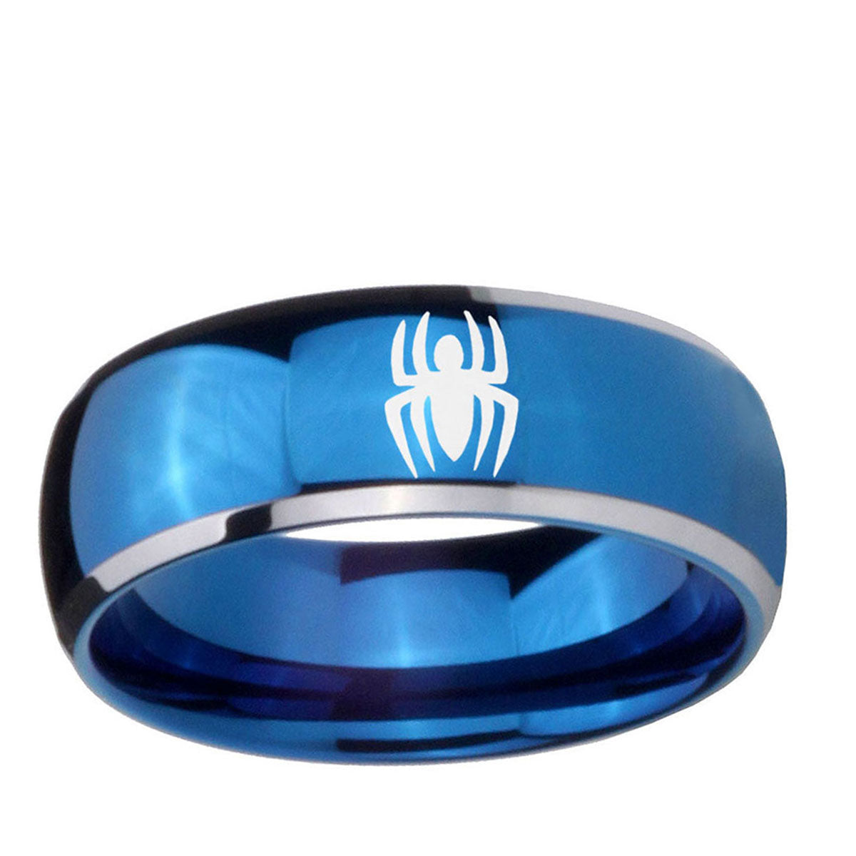 5, 8mm Spiderman Dome Blue 2 Tone Tungsten Carbide Wedding Engraving Ring