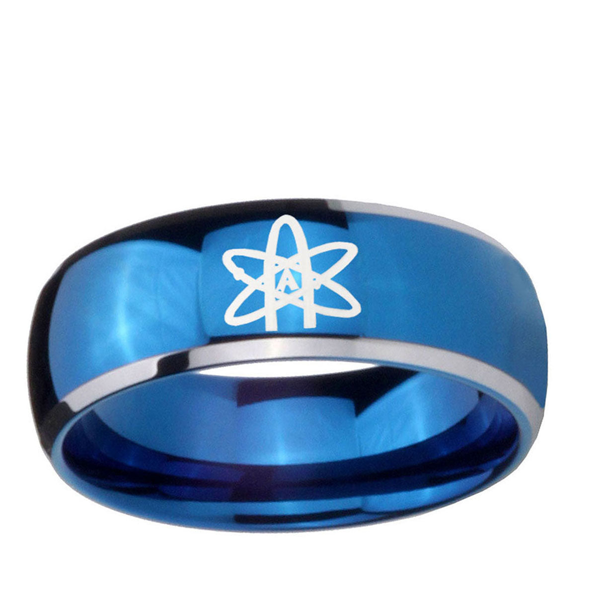 Intruding 5, 8mm American Atheist Dome Blue 2 Tone Tungsten Carbide Men's Promise Rings . Offer in both 5mm and 8mm band width polished blue plated 2 tone finished from size 4 to 14