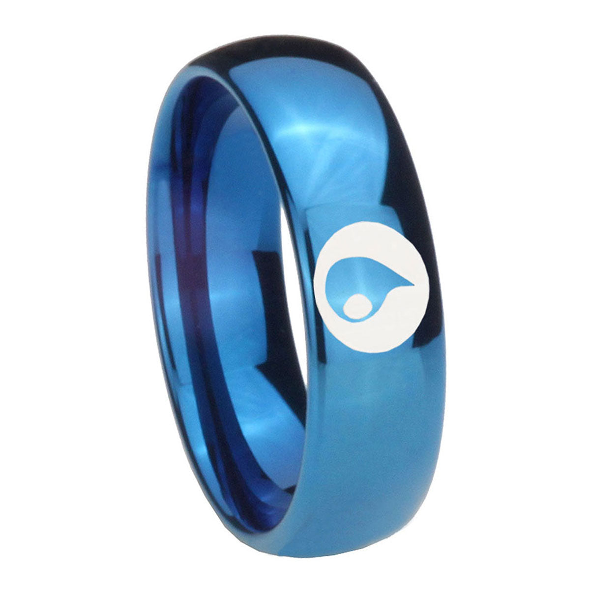 Intruding 5, 8mm Magic Gathering Dome Blue Tungsten Carbide Mens Promise Ring . Offer in both 5mm and 8mm band width polished blue plated finished from size 4 to 14