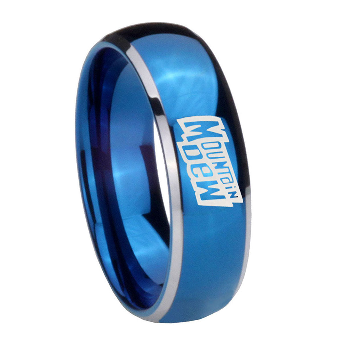 Intruding 5, 8mm Mountain Dew Dome Blue 2 Tone Tungsten Carbide Wedding Band Ring . Offer in both 5mm and 8mm band width polished blue plated 2 tone finished from size 4 to 14