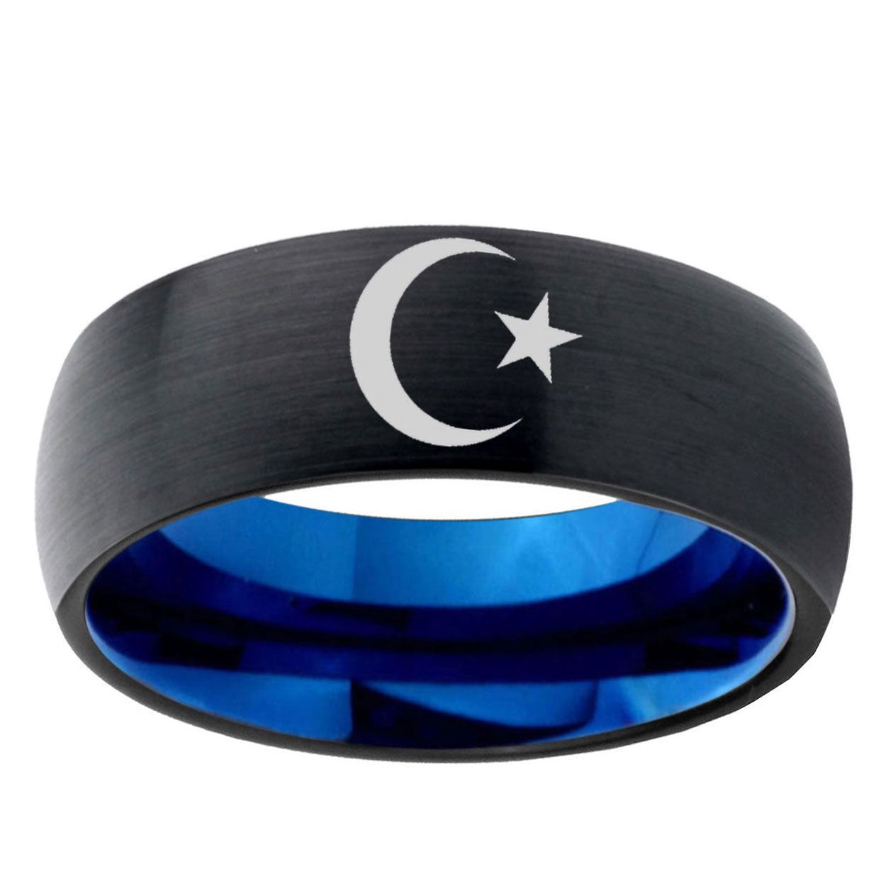 Intruding 5, 8mm Crescent Moon Stars Dome Tungsten Carbide Blue Wedding Band Mens . Offer in both 5mm and 8mm band width black and blue plated finished from size 4 to 14