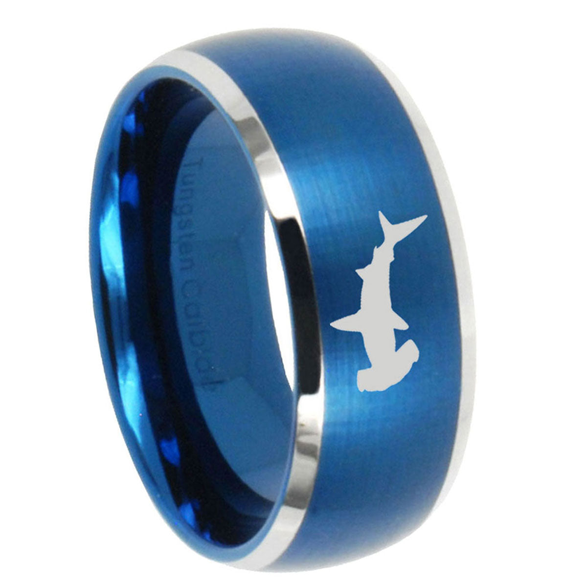 Intruding 5, 8mm Hammerhead Shark Dome Brushed Blue 2 Tone Tungsten Wedding Band Ring . Offer in both 5mm and 8mm band width brushed blue 2 tone plated finished from size 4 to 14