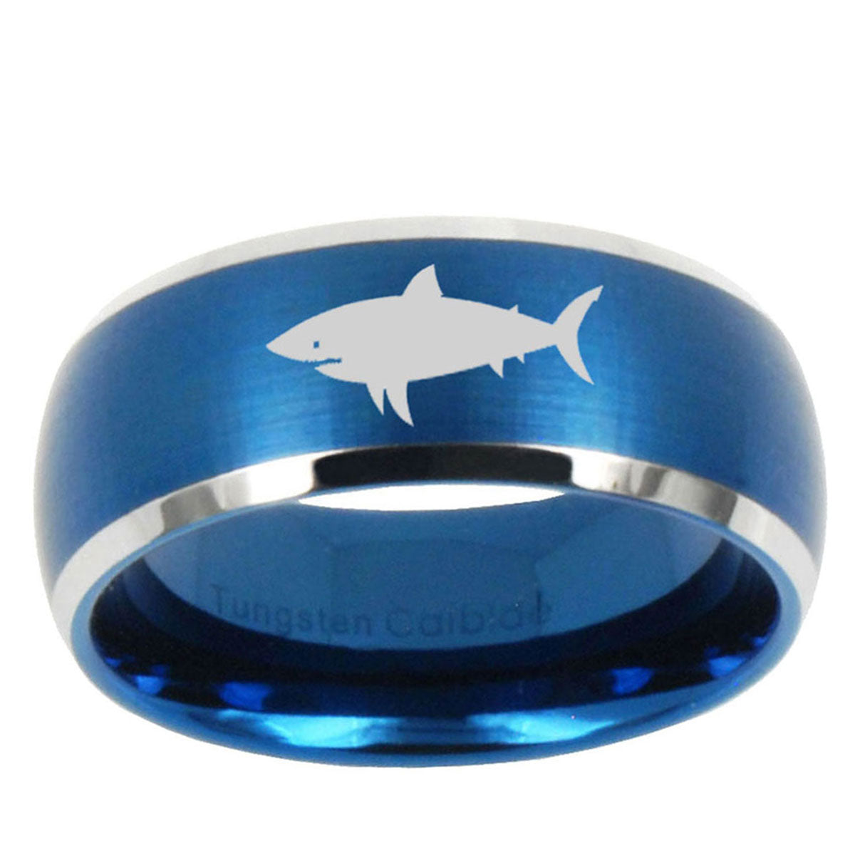Intruding 5, 8mm Shark Dome Brushed Blue 2 Tone Tungsten Wedding Band Ring . Offer in both 5mm and 8mm band width brushed blue 2 tone plated finished from size 4 to 14