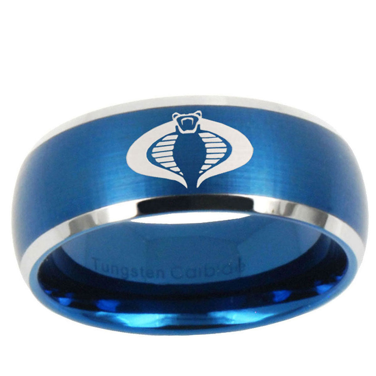 Intruding 5, 8mm Cobra Dome Brushed Blue 2 Tone Tungsten Carbide Wedding Band Ring . Offer in both 5mm and 8mm band width brushed blue 2 tone plated finished from size 4 to 14