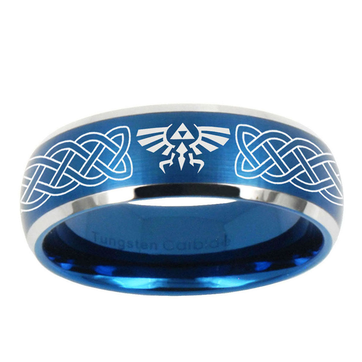 10mm Celtic Zelda Dome Brushed Blue 2 Tone Tungsten Mens Ring Personalized