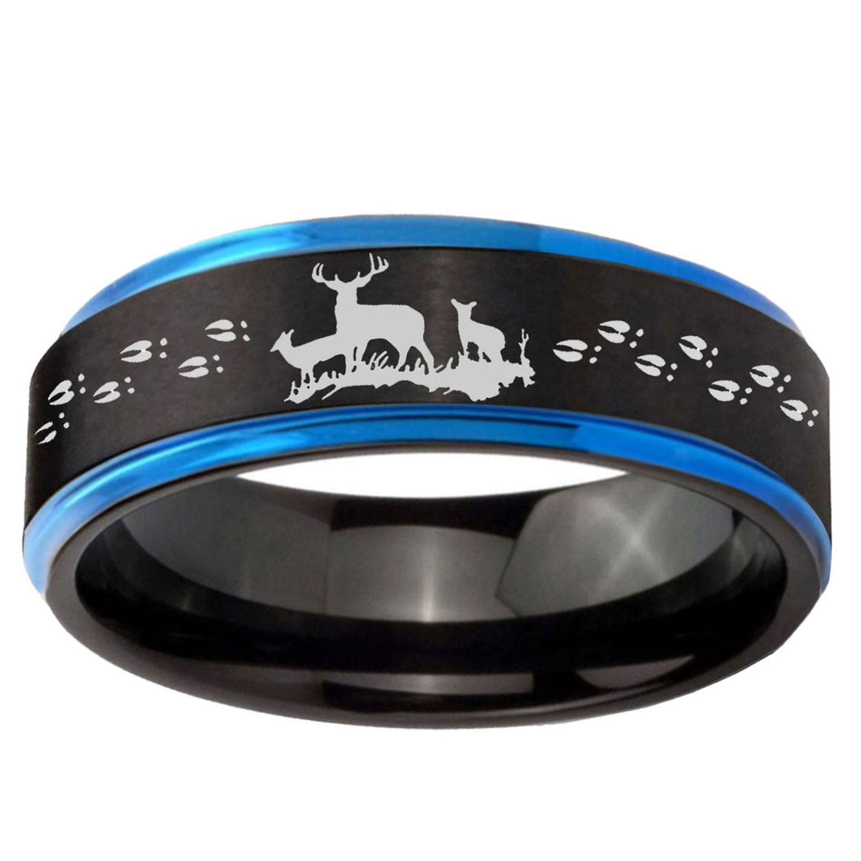 5, 8mm Deer Hunting Blue Step Edge Black Tungsten Custom Rings