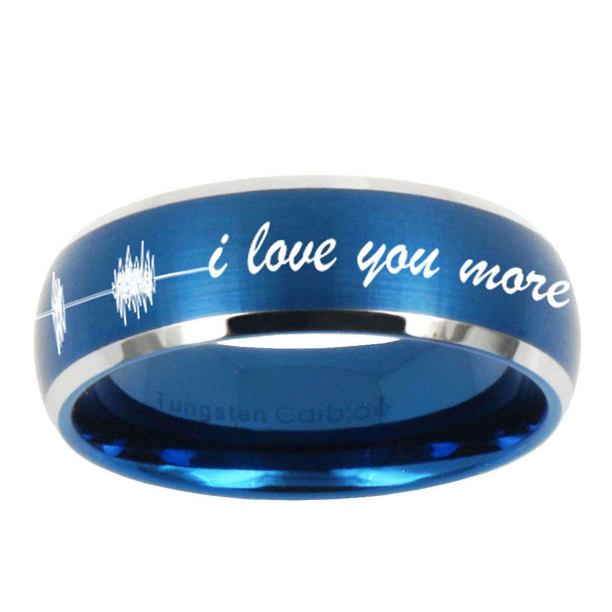 10mm Sound Wave I love you more Dome Brushed Blue 2 Tone Tungsten Promise Ring