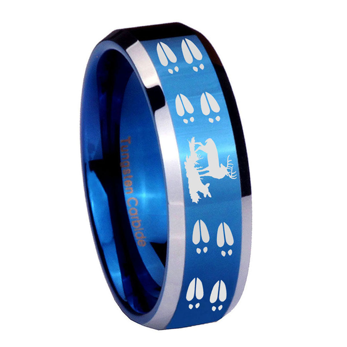 5, 8mm Deer Hunting Tracks Beveled Edges Blue 2 Tone Tungsten Men's Bands Ring