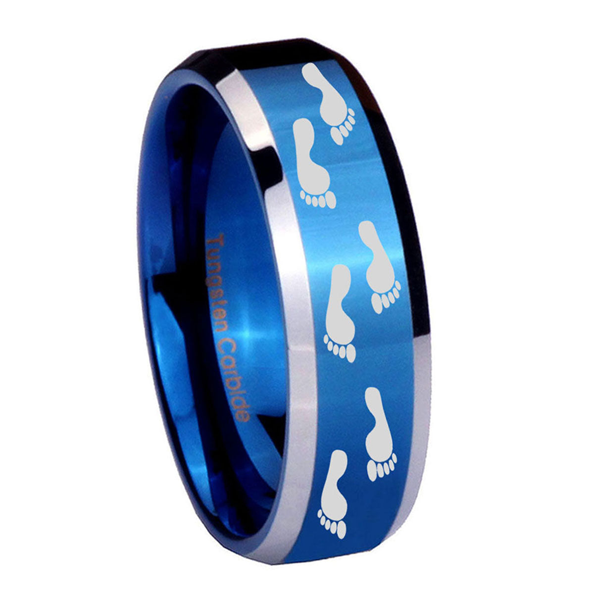 5, 8mm Foot Print Beveled Edges Blue 2 Tone Tungsten Carbide Men's Engagement Ring
