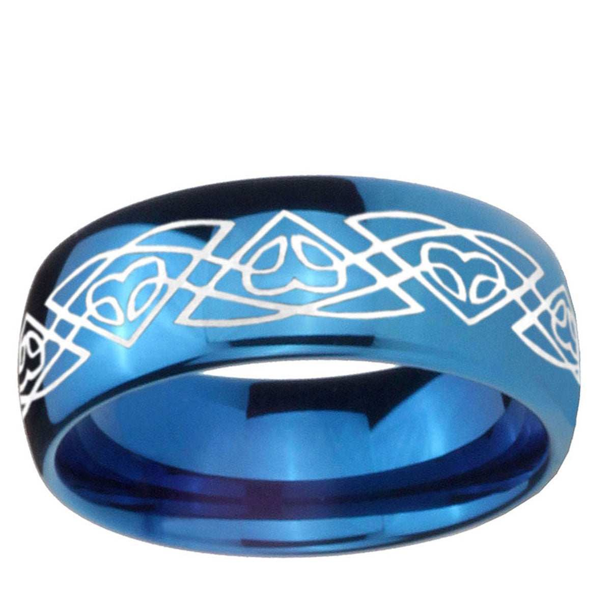 Intruding 5, 8mm Celtic Braided Dome Blue Tungsten Carbide Men's Wedding Band . Offer in both 5mm and 8mm band width polished blue plated finished from size 4 to 14