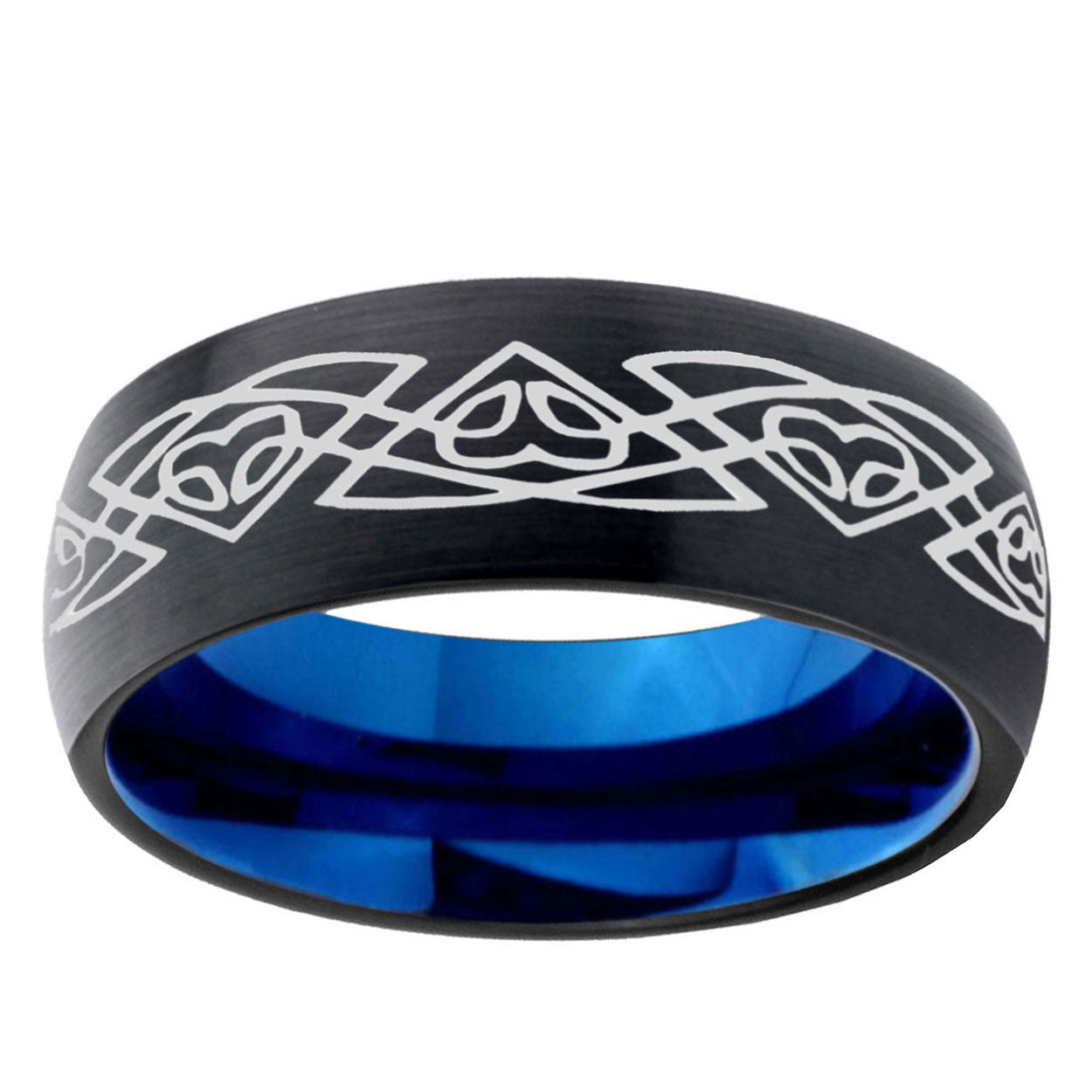 Intruding 5, 8mm Celtic Braided Dome Tungsten Carbide Blue Wedding Band Mens . Offer in both 5mm and 8mm band width black and blue plated finished from size 4 to 14