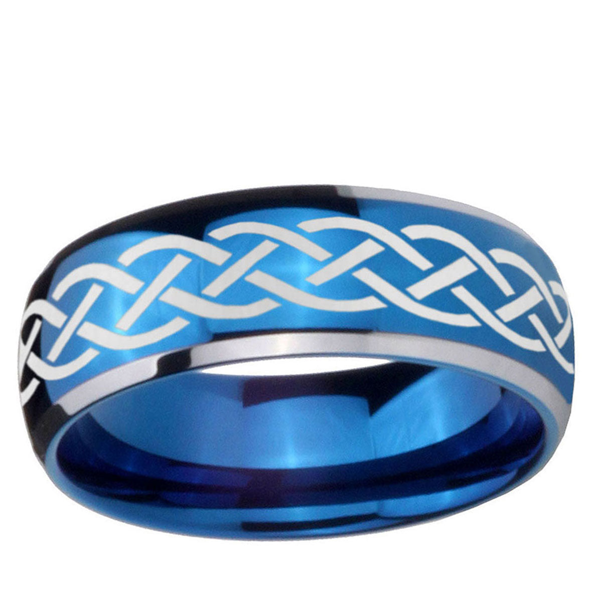 Intruding 5, 8mm Celtic Knot Dome Blue 2 Tone Tungsten Carbide Mens Wedding Band . Offer in both 5mm and 8mm band width polished blue plated 2 tone finished from size 4 to 14
