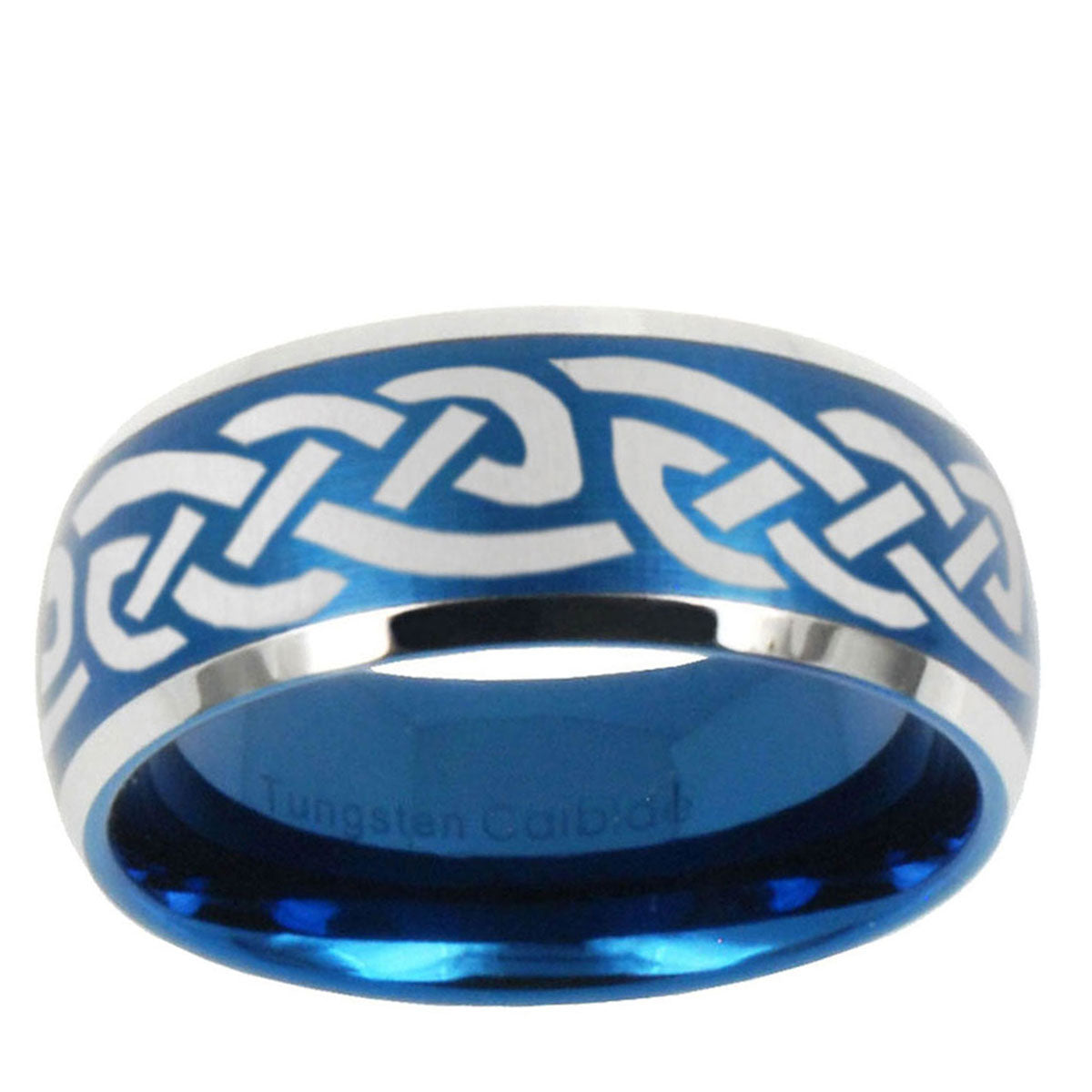Intruding 5, 8mm Celtic Knot Infinity Love Dome Brushed Blue 2 Tone Tungsten Mens Promise Ring . Offer in both 5mm and 8mm band width brushed blue 2 tone plated finished from size 4 to 14