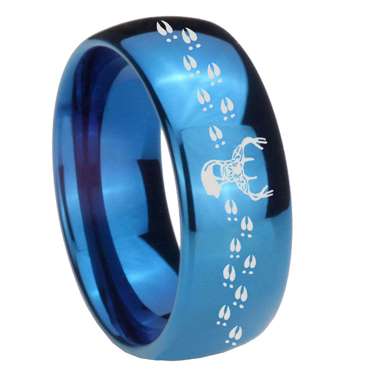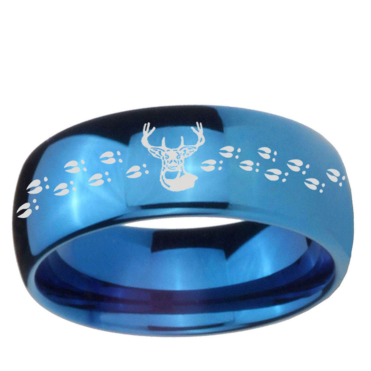 Intruding 5, 8mm Deer Antler Dome Blue Tungsten Carbide Men's Wedding Band . Offer in both 5mm and 8mm band width polished blue plated finished from size 4 to 14