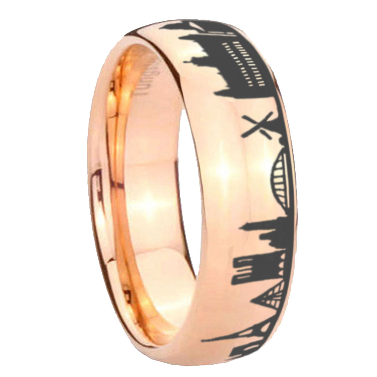 8mm France Paris City Dome Polish Rose Gold Tungsten Mens Wedding Rings