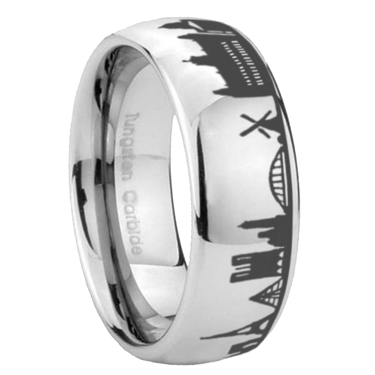 Intruding 8mm France Paris City Dome Polish Silver Tungsten Mens Wedding Bands . Offer in 8mm band width silver finished from size 7 to 14