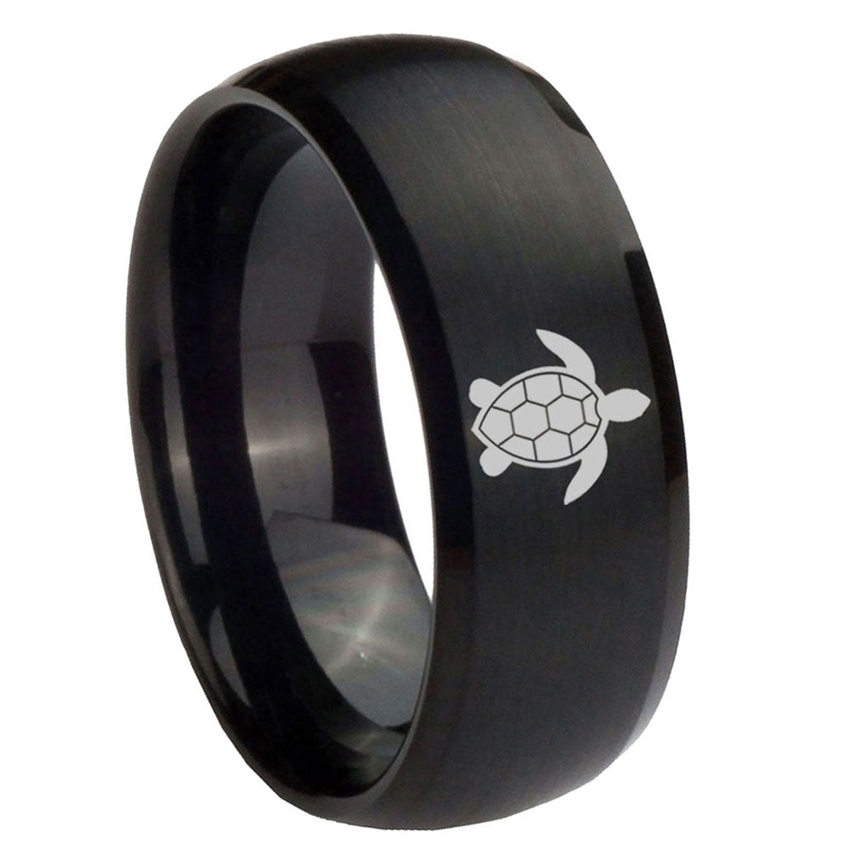 Introuding 5, 8mm Sea Turtle Dome Matte Black Silver Wedding Bands For Him . Offer in both 5mm and 8mm band width brushed black plated finished from size 4 to 14