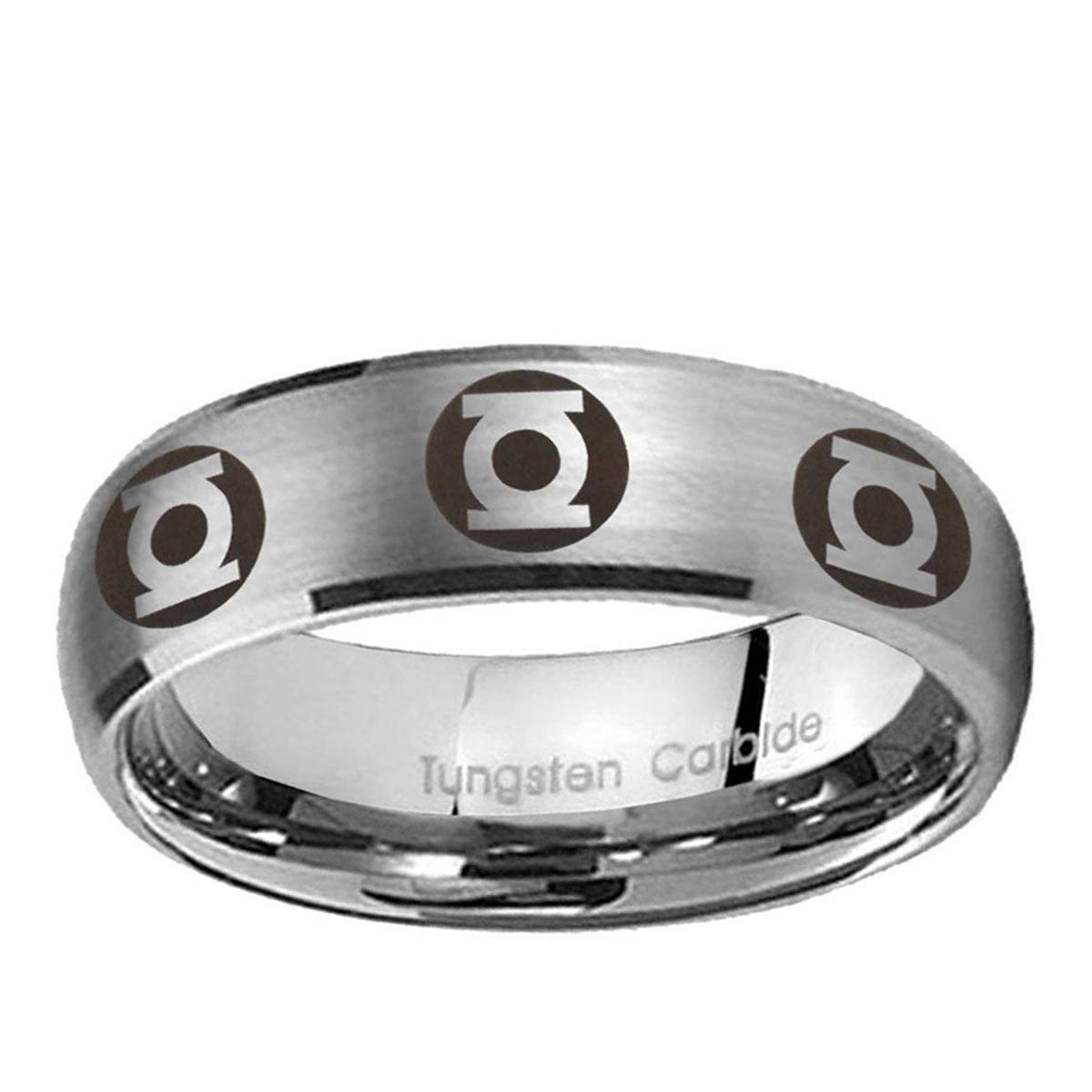 5, 8mm Multiple Green Lantern Dome Matte Silver Tungsten Rings