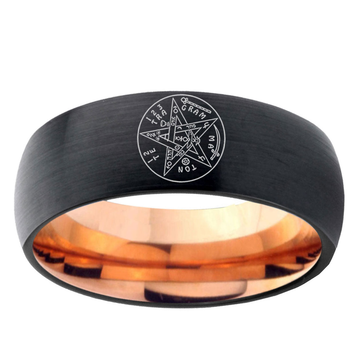 5, 8mm Tetragrammaton Spiritual Kabbalah Dome Black And Rose Gold Tungsten Ring For Men