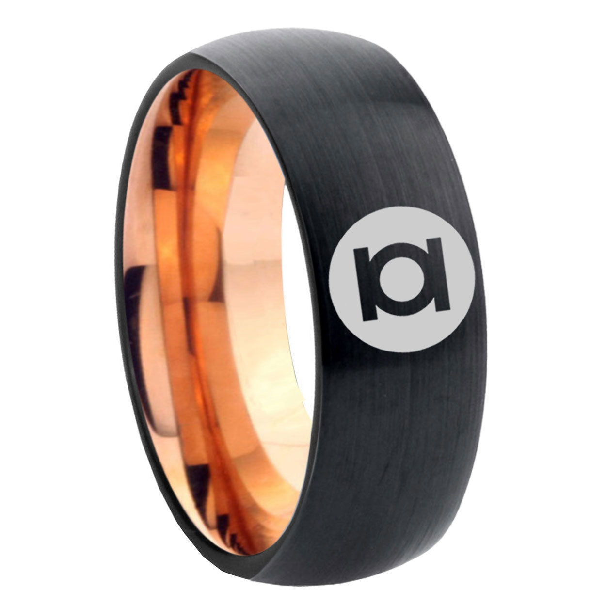 Intruding 5, 8mm Green Lantern Dome Rose Gold Black Unique Mens Wedding Rings . Offer in both 5mm and 8mm band width black and rose gold plated finished from size 4 to 14