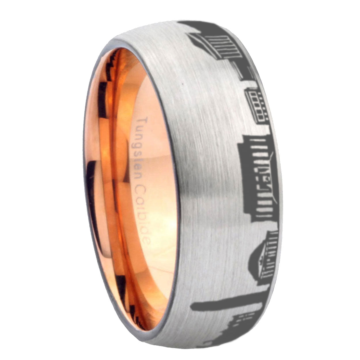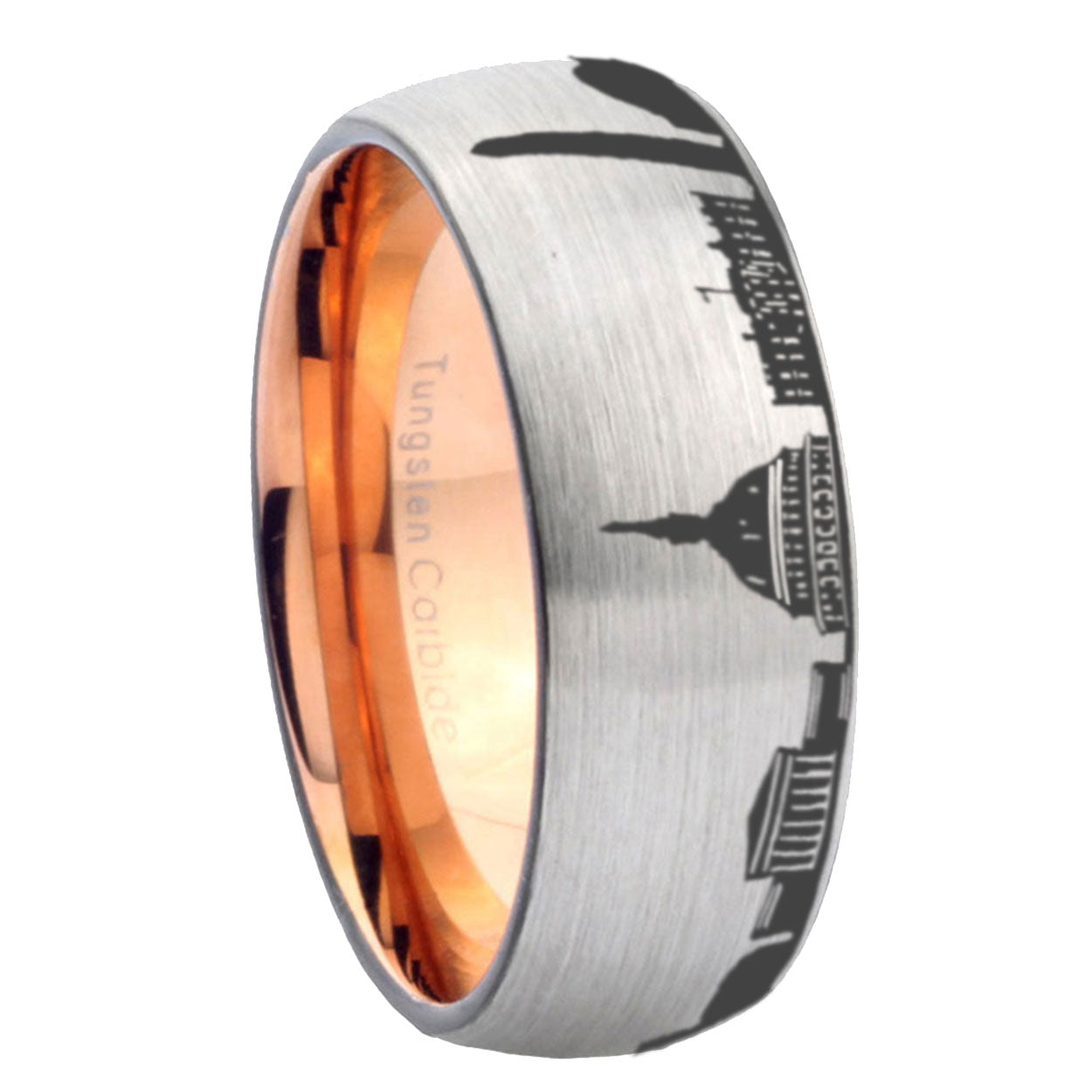 8mm DC Washington City Dome Brushed Gray Tungsten Rose Gold Plated Inside Mens Band