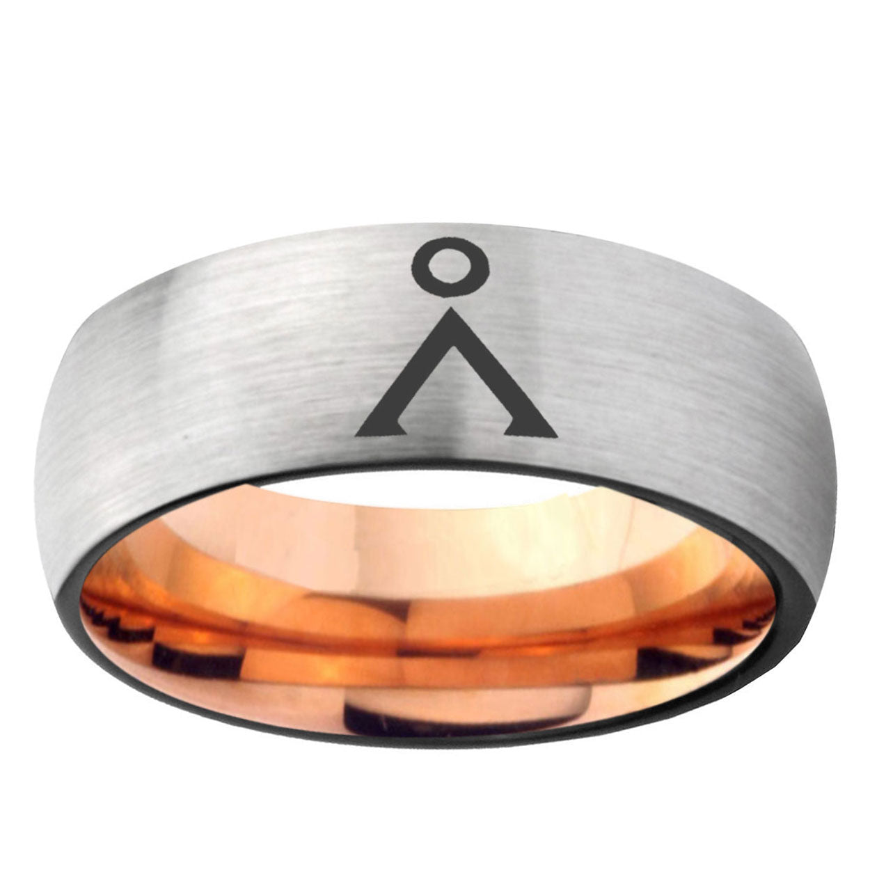 Intruding 6, 8mm Stargate Dome Gray And Rose Gold Tungsten Carbide Custom Ring for Men . Offer in both 6mm and 8mm band width gray and rose gold plated finished from size 5 to 14