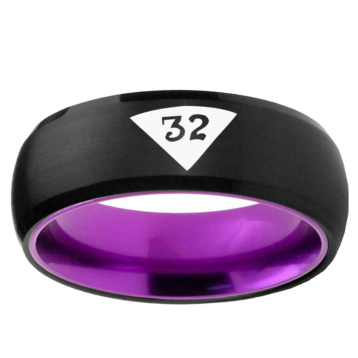 8mm Masonic 32 Triangle Design Freemason Dome Black And Purple Tungsten Carbide Custom Men's Ring