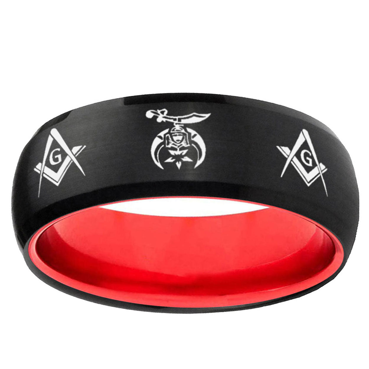 Intruding 8mm Masonic Shriners Dome Black And Red Tungsten Carbide Men's Wedding Band . Offer in men wedding band in 8mm band width Black And Red plated finished from size 7 to 14