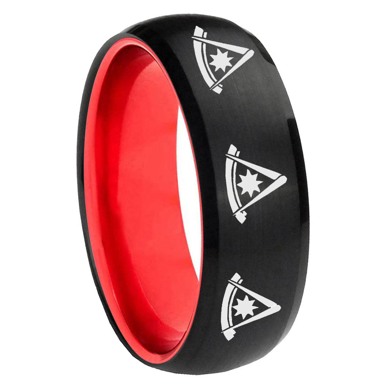 Intruding 8mm Multiple Pester Master Masonic Dome Black And Red Tungsten Men's Ring . Offer in men wedding band in 8mm band width Black And Red plated finished from size 7 to 14