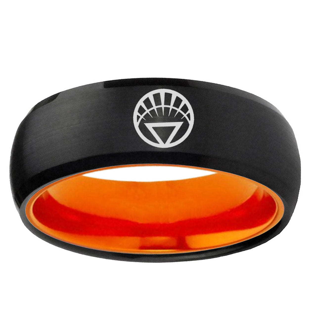 8mm White Lantern Dome Black Orange Tungsten Wedding Band