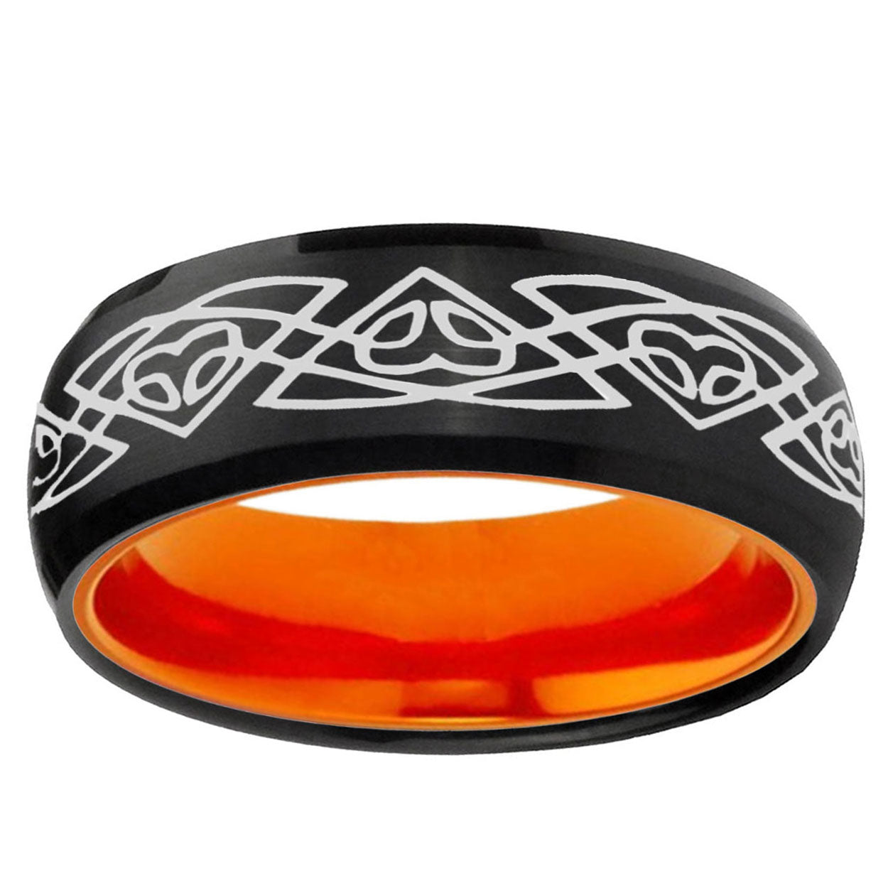 8mm Celtic Braided Dome Black And Orange Tungsten Carbide Men's Wedding Ring