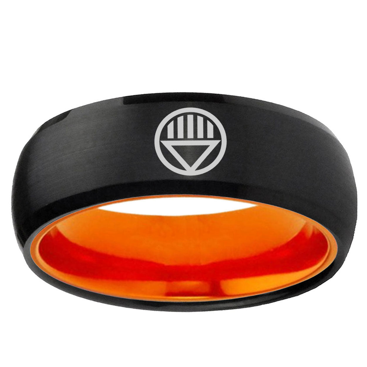 Intruding 8mm Black Lantern Dome Black Orange Best Man Gifts . Offer in 8mm band width black and orange finished from size 7 to 14