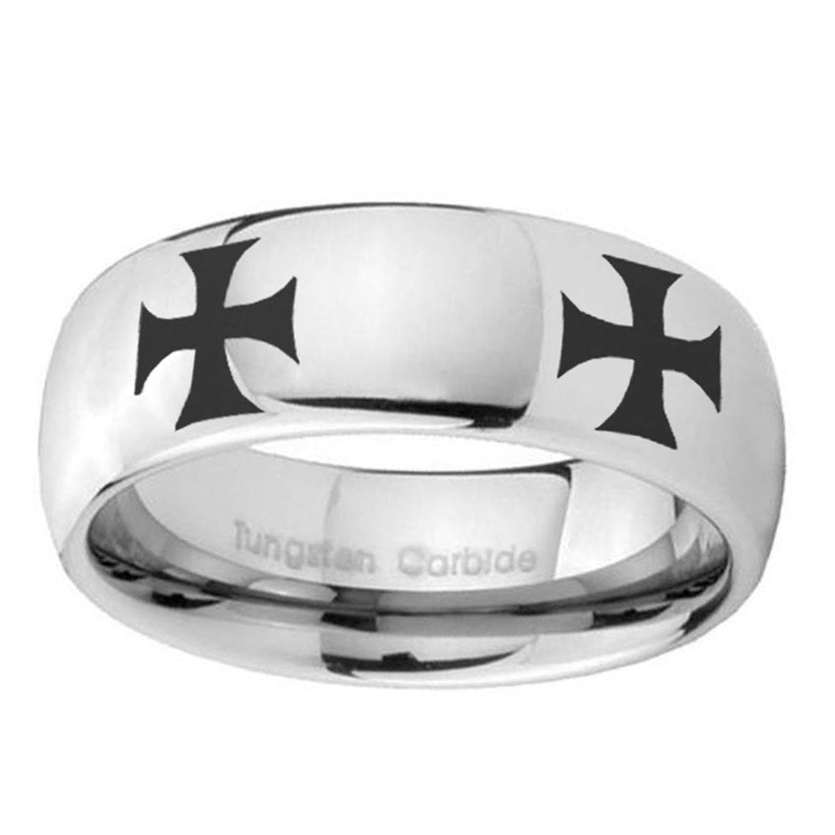 Introuding 5, 8mm 4 Maltese Cross Mirror Dome Tungsten Carbide Mens Ring Engraved . Offer in both 5mm and 8mm band width polished silver fnished from size 4 to 14
