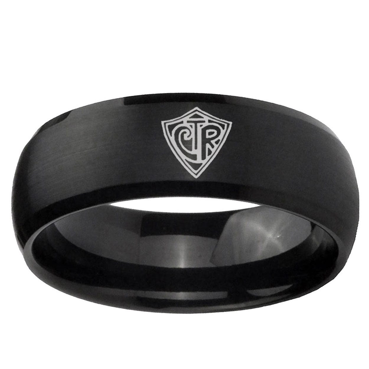 Celebrate milestones with the 10mm CTR Dome Brush Black Tungsten Carbide Mens Anniversary Ring. This brushed black dome ring with CTR design is perfect for anniversaries.