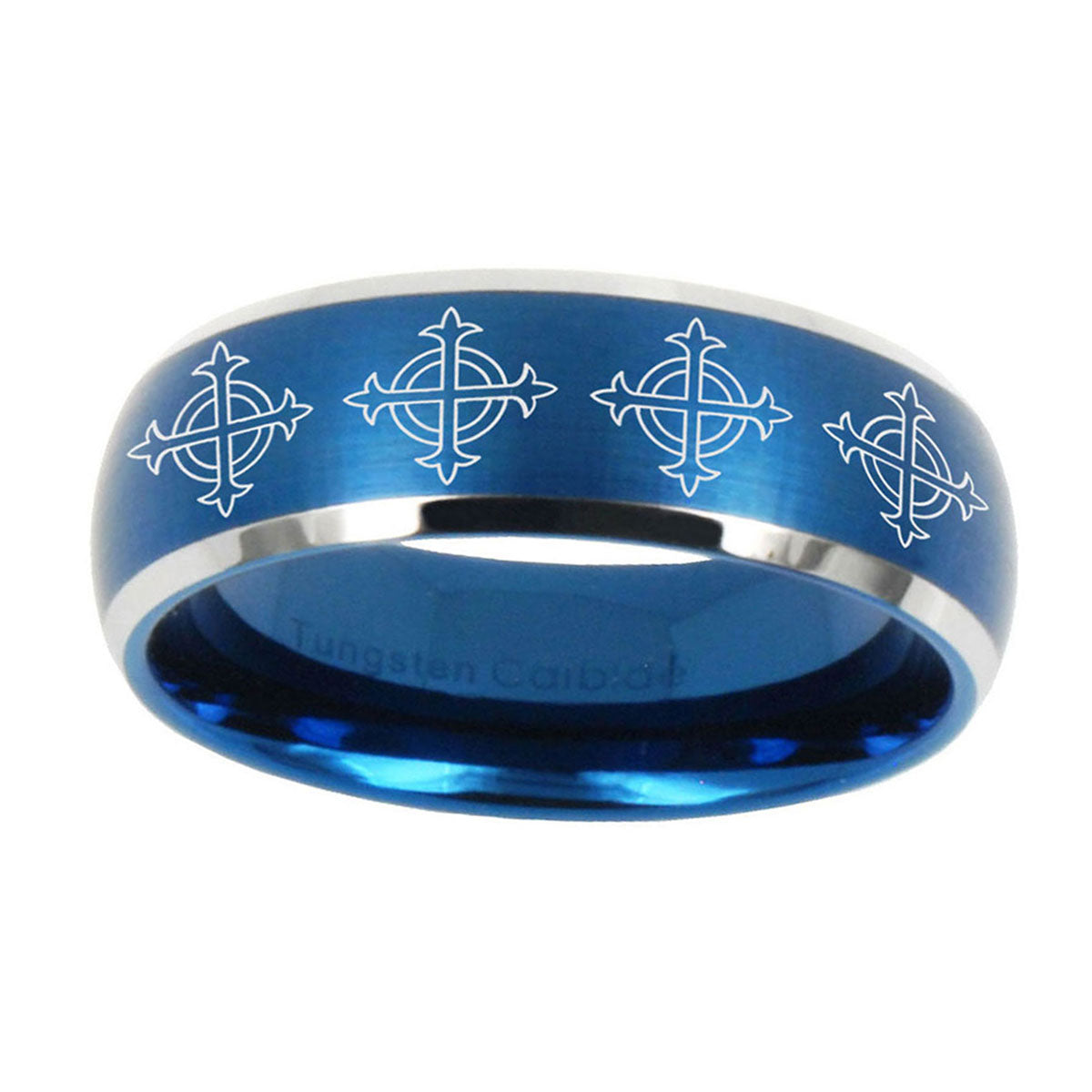 10mm Multiple Crosses Dome Brushed Blue 2 Tone Tungsten Wedding Bands Ring