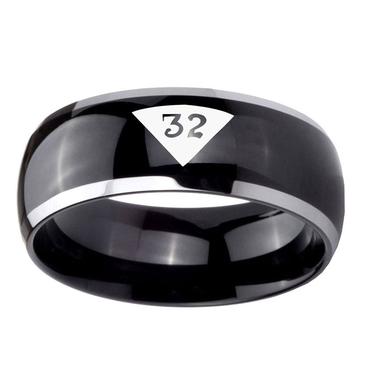 5, 8mm Masonic 32 Triangle Design Freemason Dome Glossy Black 2 Tone Tungsten Carbide Anniversary Ring