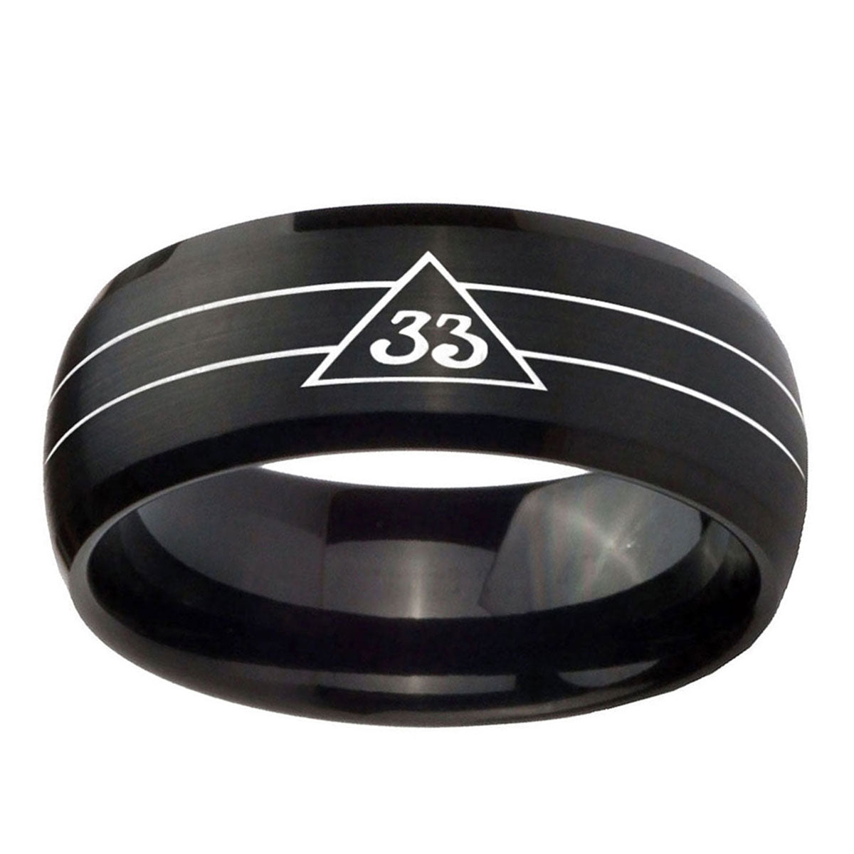 Introuding 5, 8mm Masonic 32 Duo Line Freemason Dome Brush Black Tungsten Carbide Mens Promise Ring . Offer in both 5mm and 8mm band width brush black plated fnished from size 4 to 14