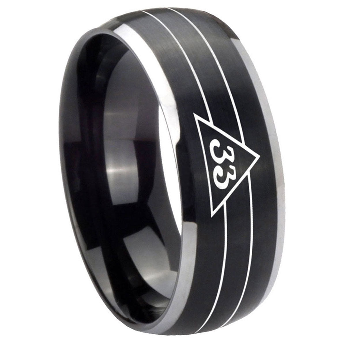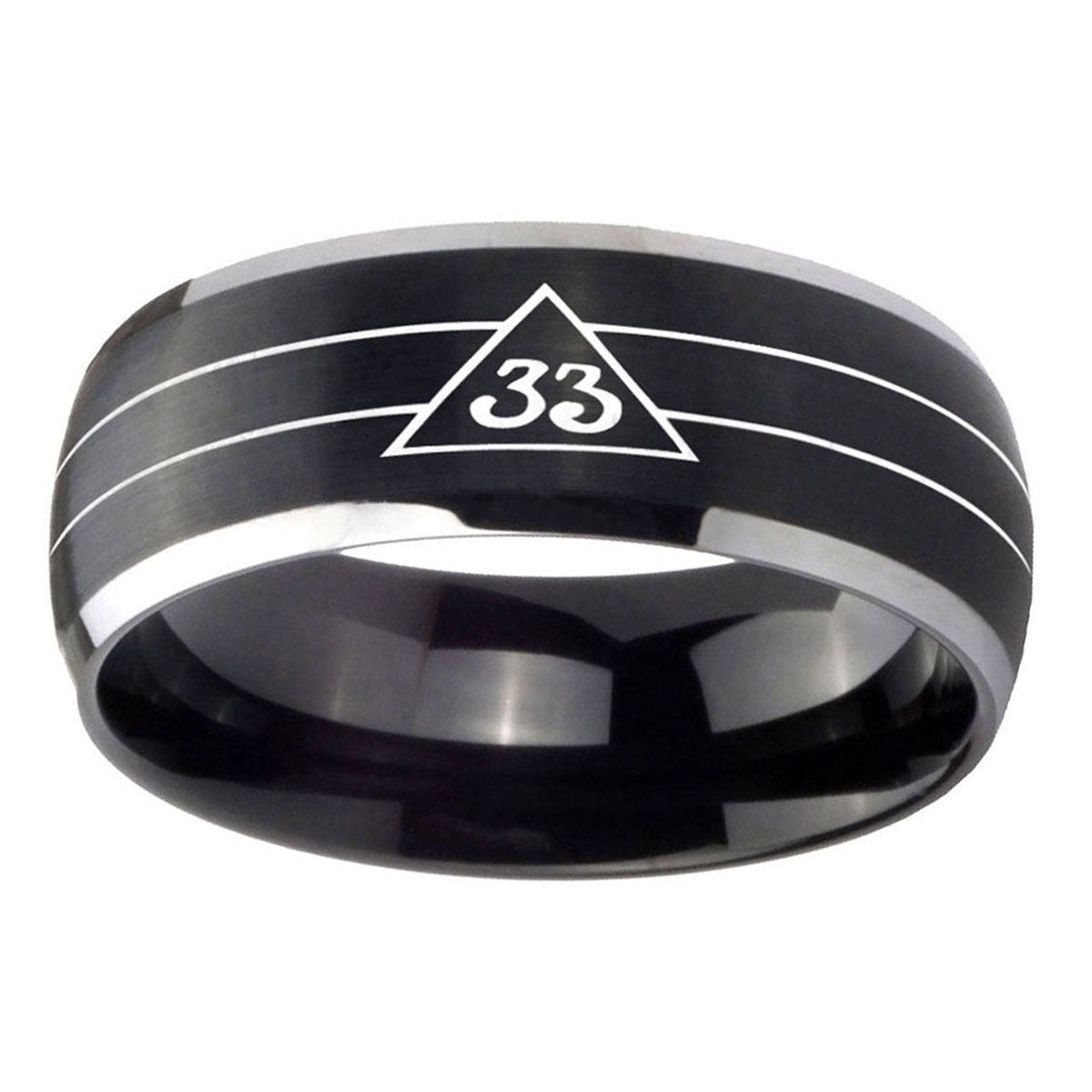 Introuding 5, 8mm Masonic 32 Duo Line Freemason Dome Brushed Black 2 Tone Tungsten Carbide Mens Ring Personalized . Offer in both 5mm and 8mm band width brushed black plated fnished from size 4 to 14