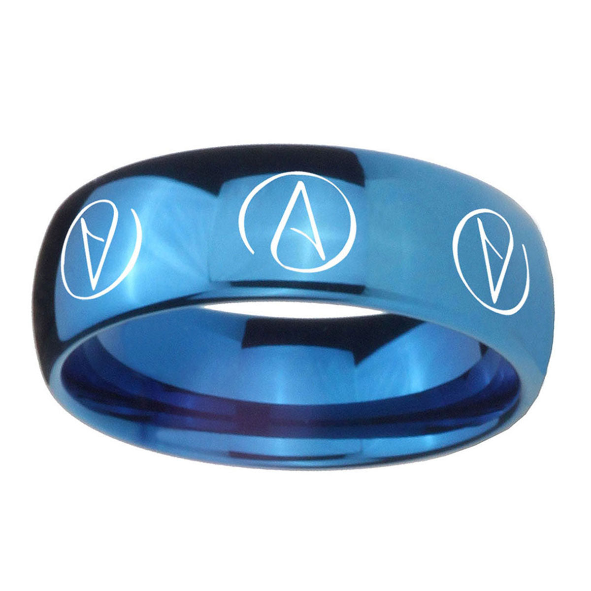 5, 8mm Atheist Design Dome Blue Tungsten Wedding Engagement Ring
