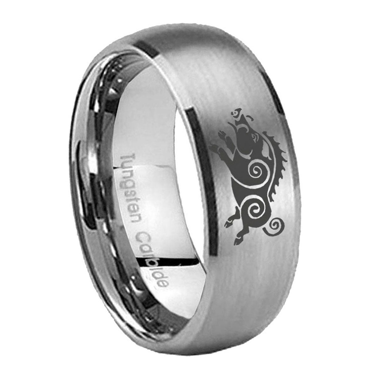5, 8mm Wild Boar Dome Brushed Tungsten Carbide Men's Promise Rings