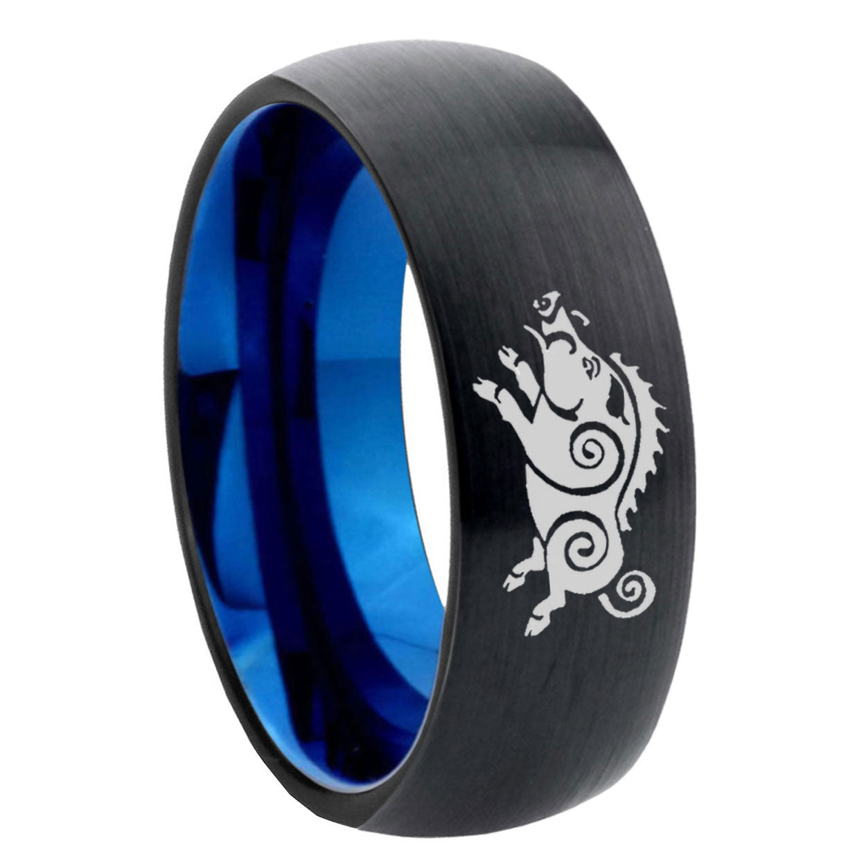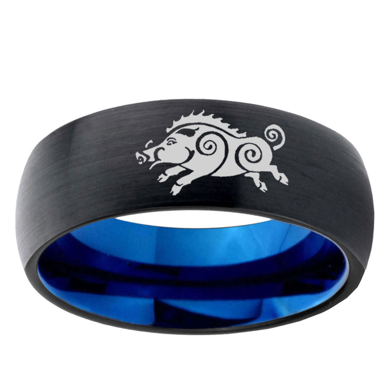 Intruding 5, 8mm Wild Boar Dome Tungsten Carbide Blue Wedding Band Mens . Offer in both 5mm and 8mm band width black and blue plated finished from size 4 to 14