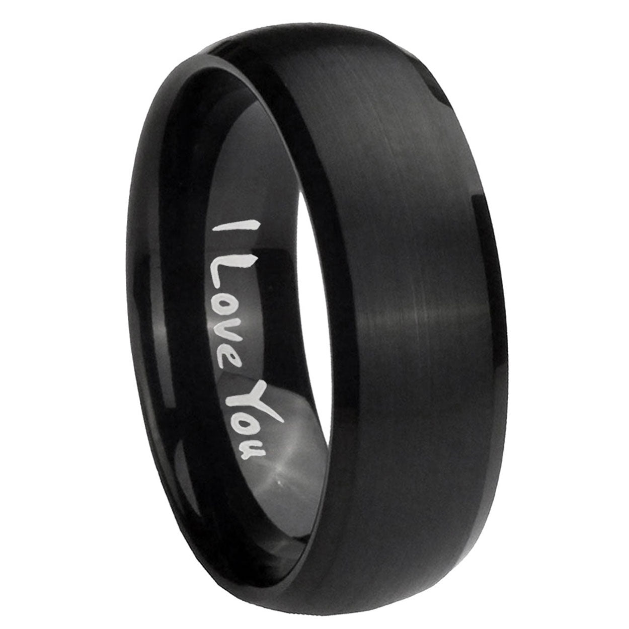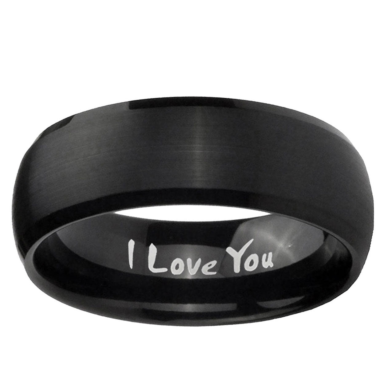Intruding 5, 8mm I Love You Dome Brush Black Tungsten Carbide Wedding Engraving Ring . Offer in both 5mm and 8mm band width brush black plated finished from size 4 to 14