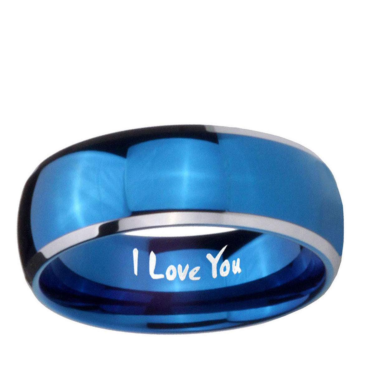 Intruding 5, 8mm I Love You Dome Blue 2 Tone Tungsten Carbide Men's Bands Ring . Offer in both 5mm and 8mm band width polished blue plated 2 tone finished from size 4 to 14