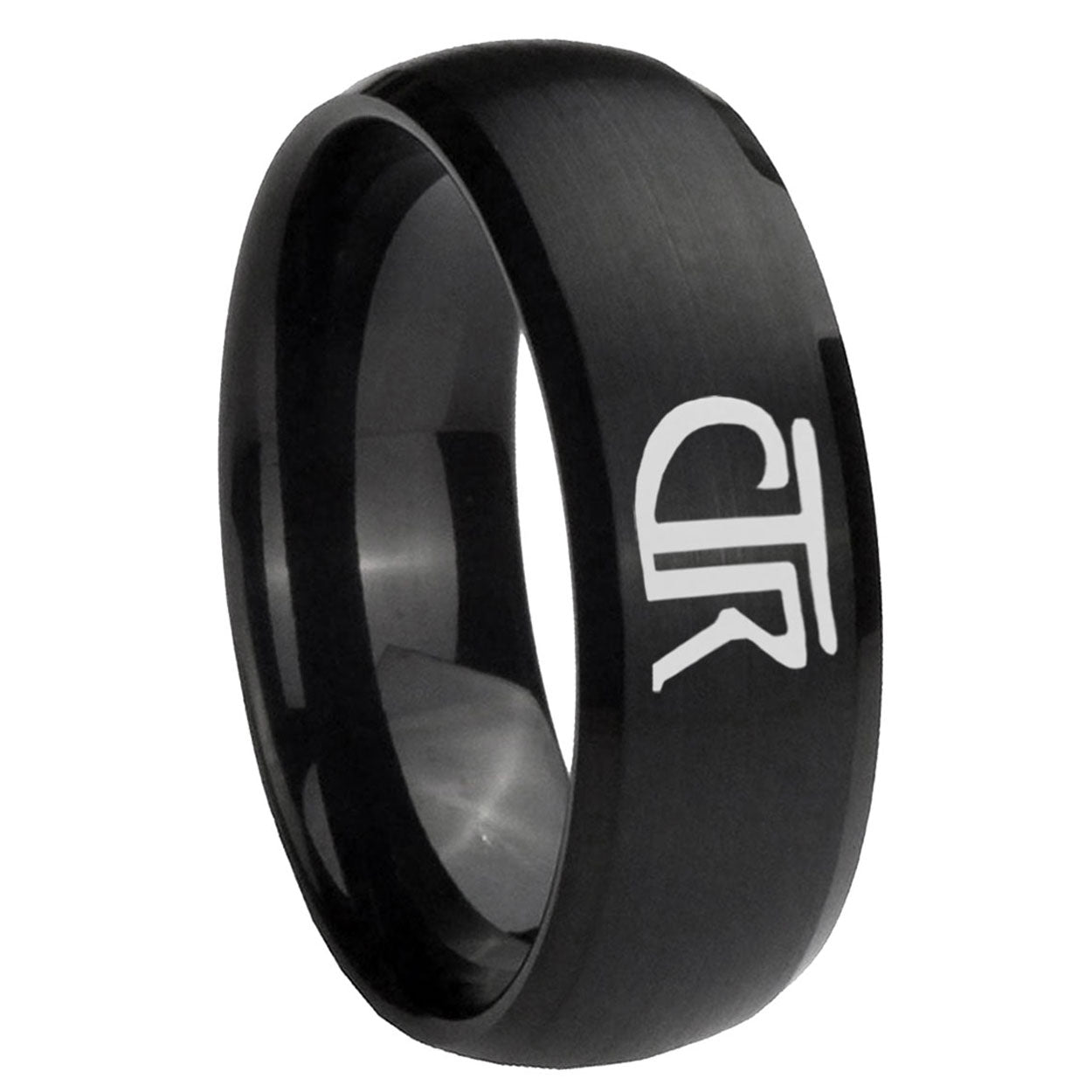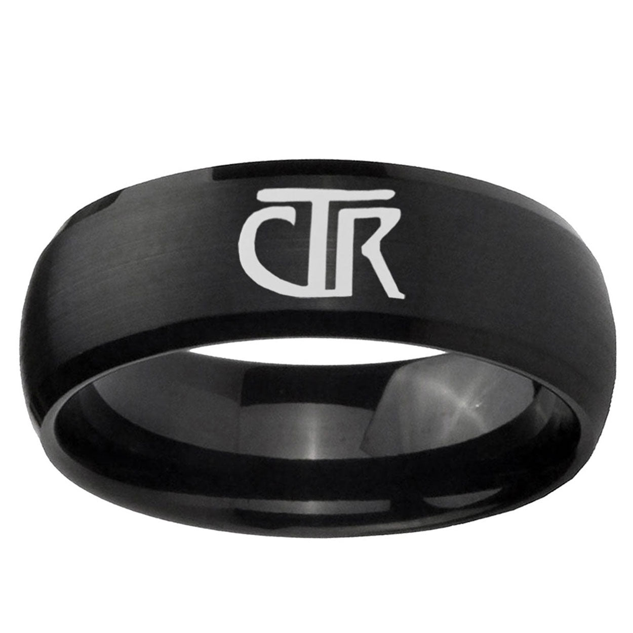Intruding 5, 8mm CTR Dome Brush Black Tungsten Carbide Custom Ring for Men . Offer in both 5mm and 8mm band width brush black plated finished from size 4 to 14