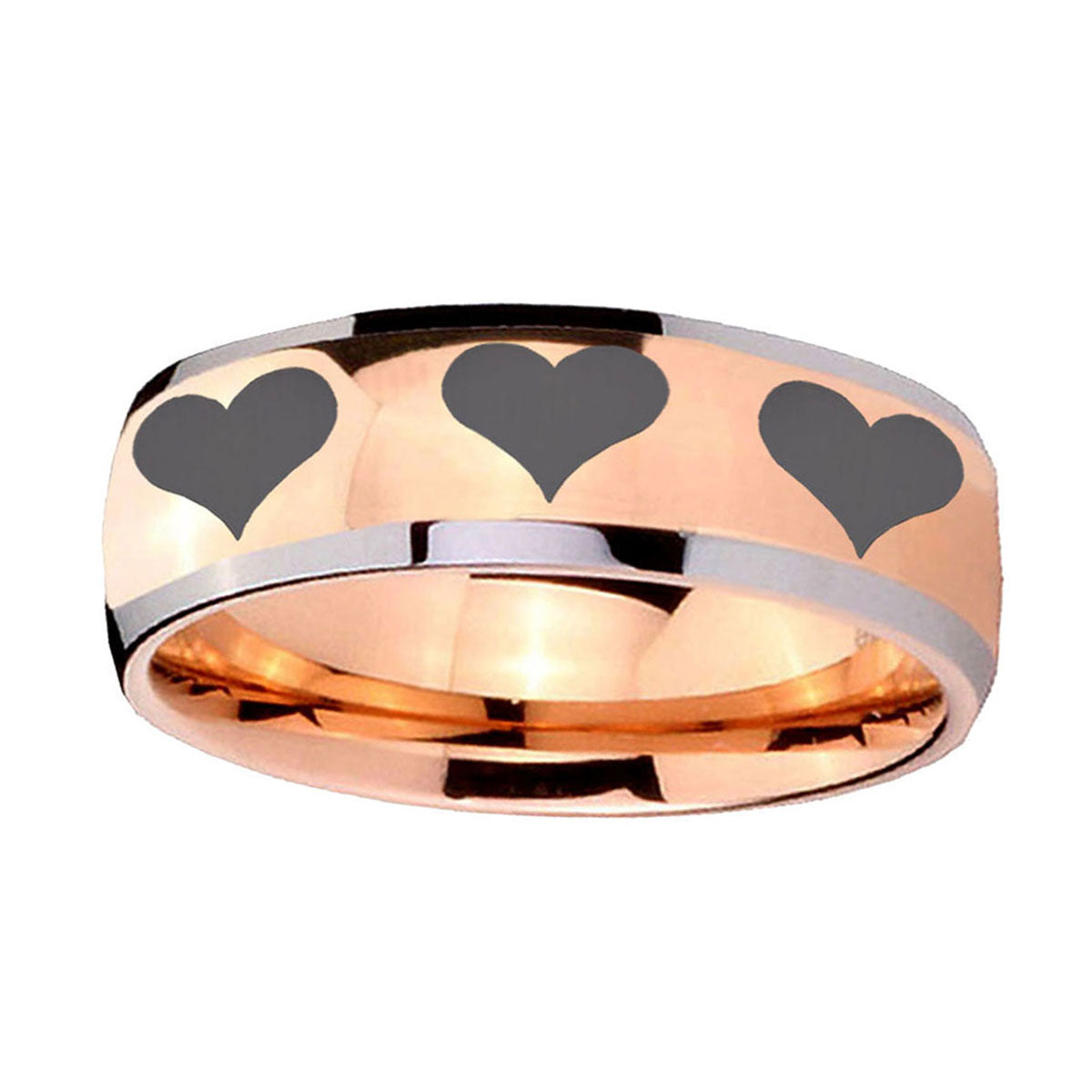 Introuding 5, 8mm Multiple Heart Dome Rose Gold Tungsten Carbide Wedding Band Mens . Offer in both 5mm and 8mm band width two tone rose gold plated fnished from size 4 to 14