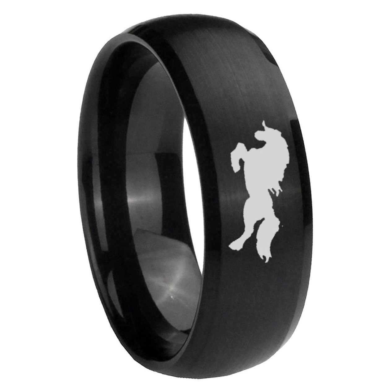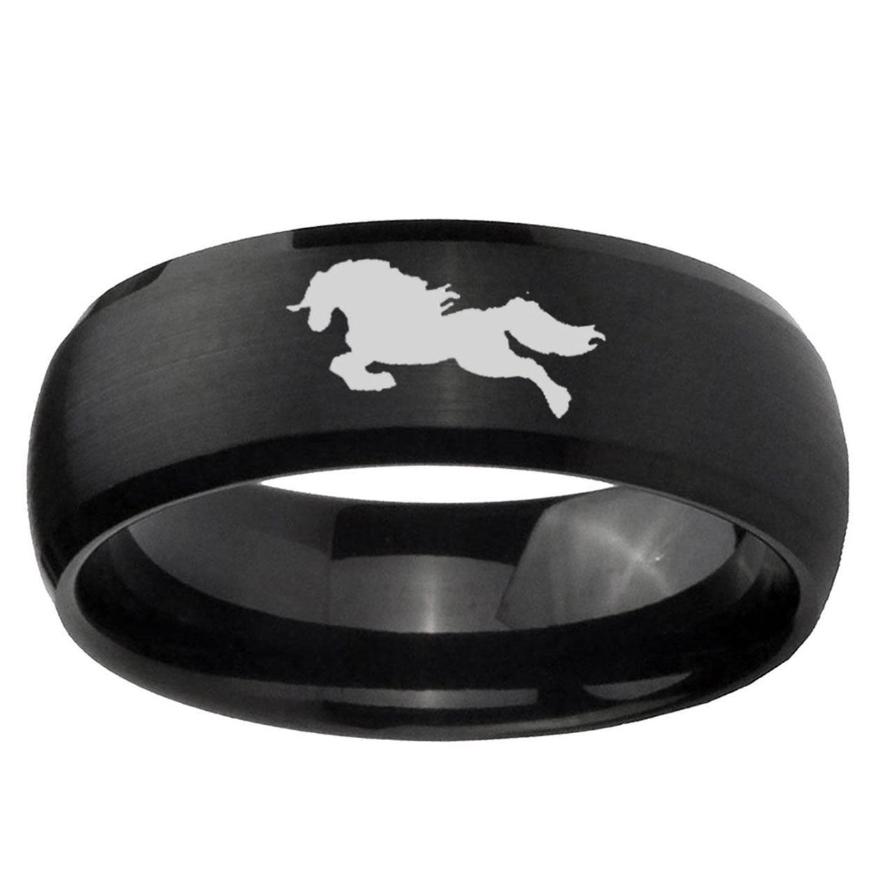 Intruding 5, 8mm Horse Dome Brush Black Tungsten Carbide Men's Engagement Ring . Offer in both 5mm and 8mm band width brush black plated finished from size 4 to 14