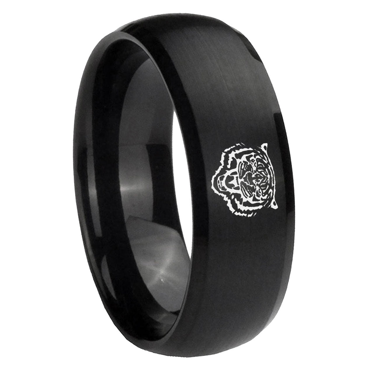 Propose with the 10mm Lion Dome Brush Black Tungsten Carbide Men's Engagement Band. This brushed black dome ring with Lion design is ideal for engagements.