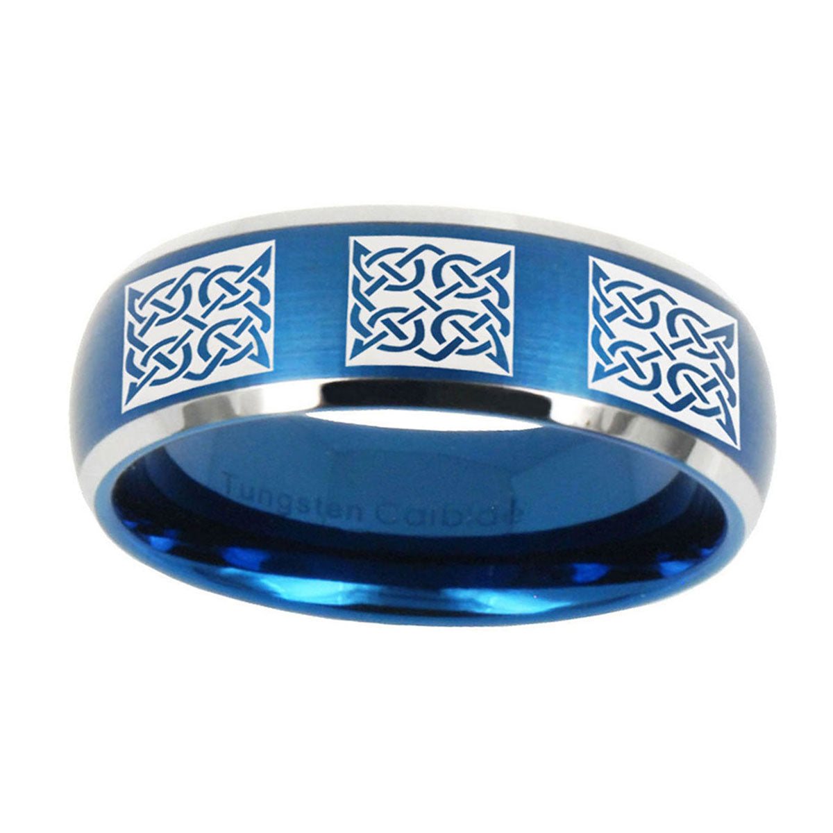10mm Multiple Crosses Dome Brushed Blue 2 Tone Tungsten Mens Engagement Ring