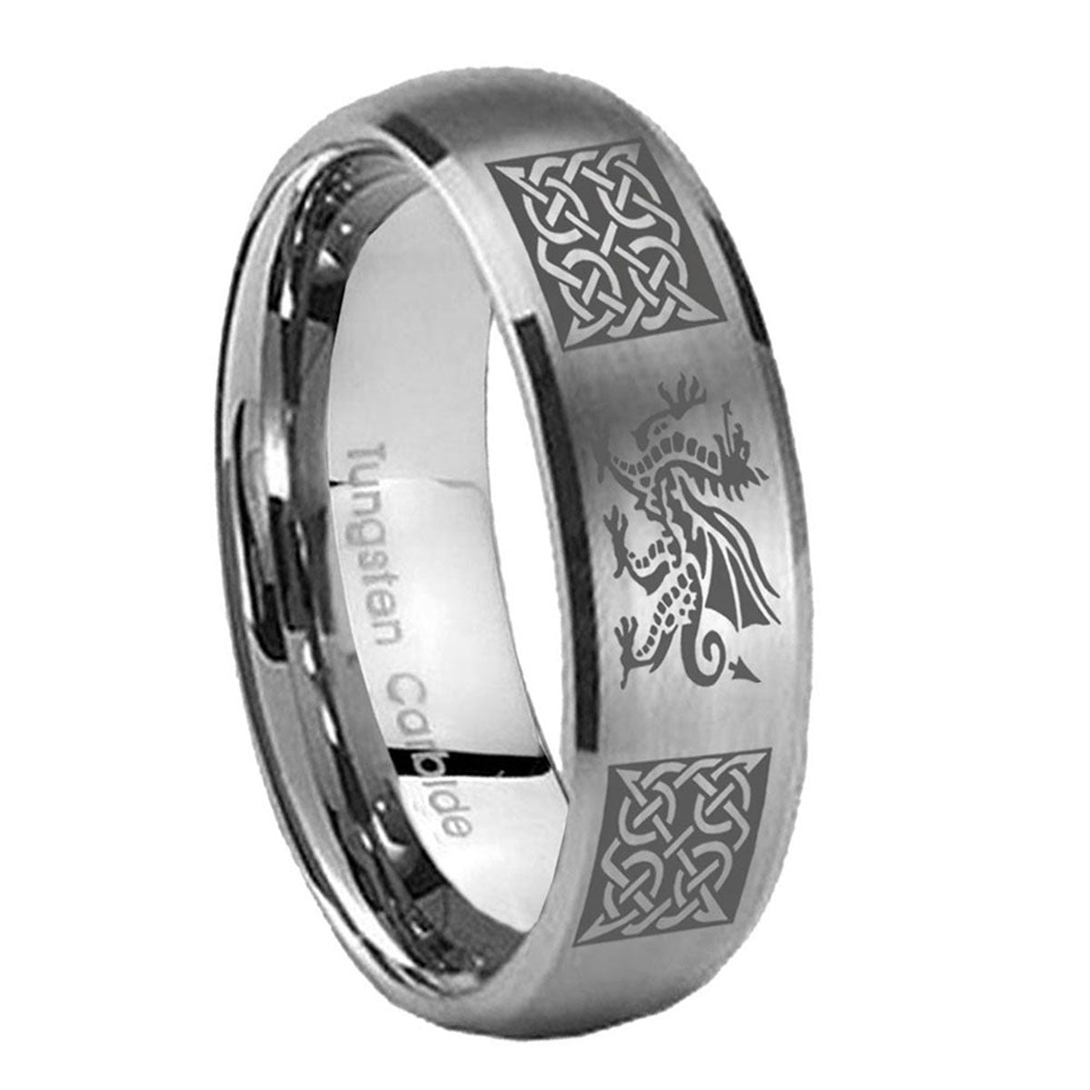 10mm Multiple Dragon Celtic Dome Brushed Tungsten Carbide Men's Promise Rings